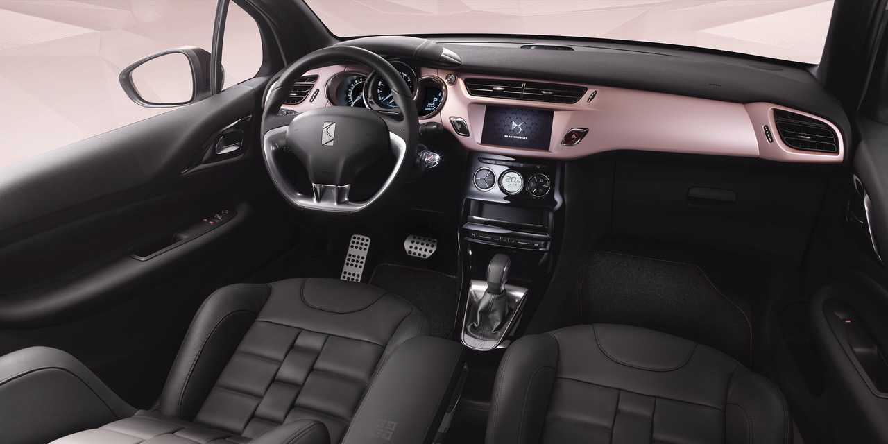 Côté extérieur, la carrosserie se dote d’un blanc opalin couplé à une couleur pourpre sur le toit, pour respecter le code bi-colore de la belle. A noter que cette édition limitée (500 exemplaires) sera disponible en version classique ou cabriolet avec une large gamme de motorisations (voir en fin d’article). Le Directeur Artistique de Maquillage et Couleurs de la Maison Givenchy, Nicolas Degennes a même tenu à s’exprimer au sujet de la citadine signée DS :