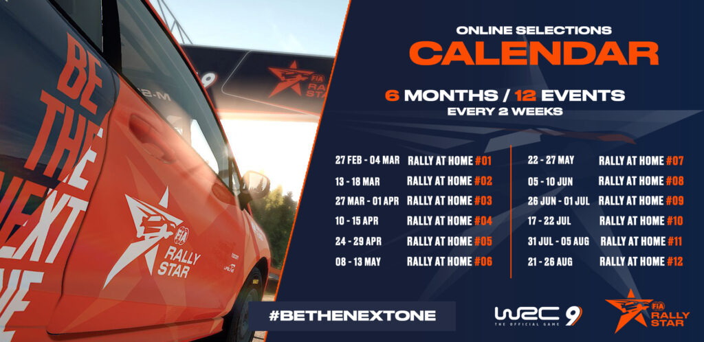 A l’instar de l’opération « volant FFSA », la FIA Rally Star propose à n’importe qui de tenter sa chance pour devenir pilote de rallye. Au programme, 12 épreuves réparties entre février et août 2021. Chaque vainqueur sera qualifié pour l’une des six finales continentales. Ensuite, à l’issue de ces finales régionales seront désignés les 7 vainqueurs de cette première FIA Rally Star organisée pour les joueurs rêvant de devenir de vrais pilotes.