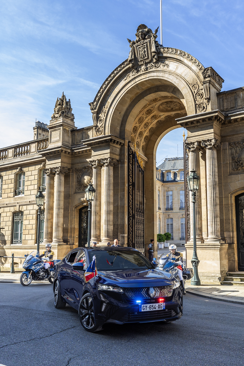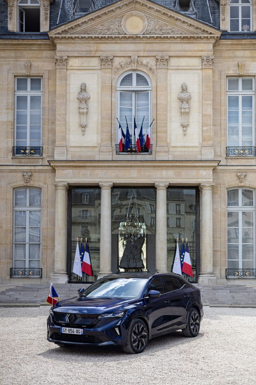 La Présidence de la République a choisi le dernier né de la marque Renault sur le segment D, Renault Rafale, comme voiture officielle. Aussi performant qu’efficient, Renault Rafale témoigne du savoir-faire de l’ingénierie Renault. Dessiné par les équipes du centre de design Renault installées à Guyancourt, selon le nouveau langage formel initié par Gilles Vidal, Directeur du design de la marque Renault, Rafale ouvre une nouvelle ère du design de la marque, visionnaire, élégante et audacieuse.