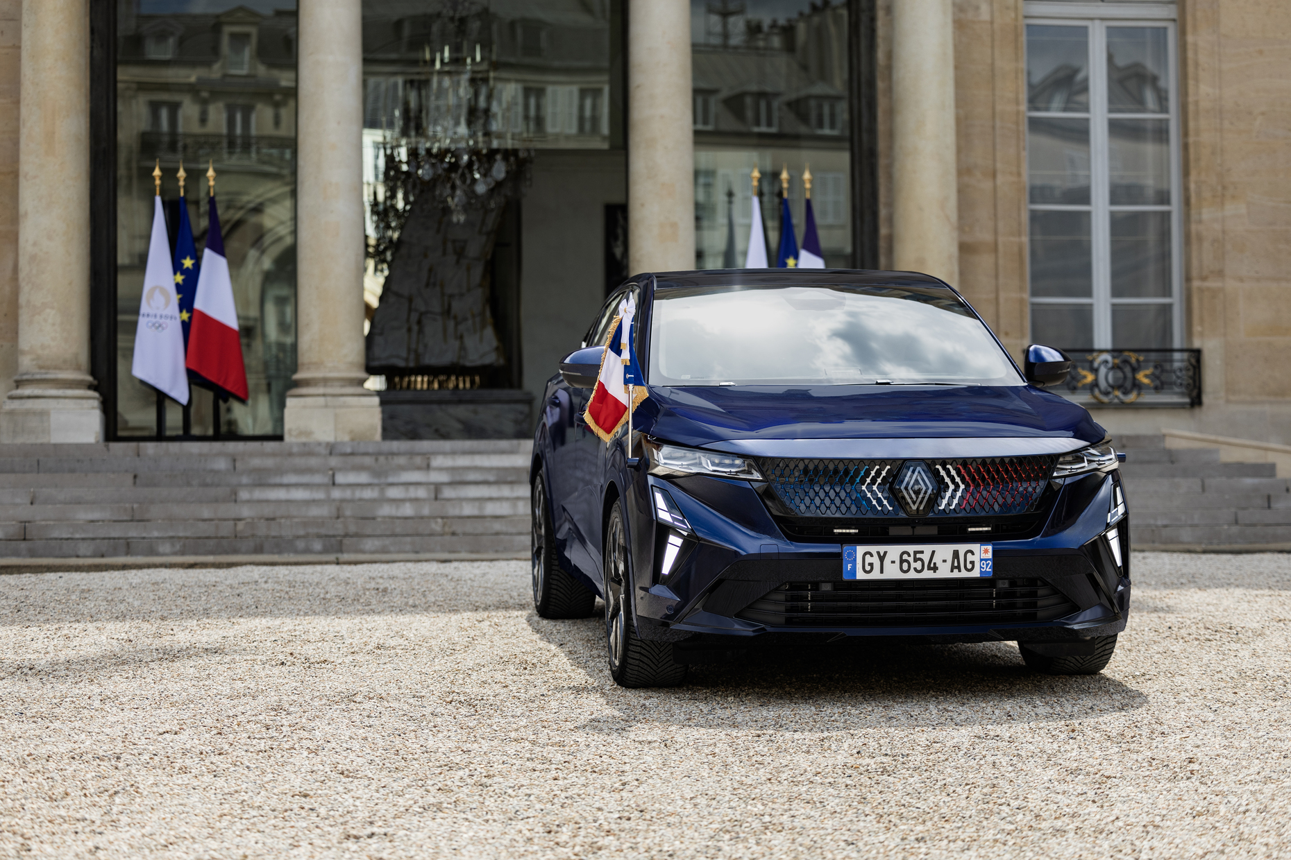 C’est à bord d’une création unique, que ce 14 juillet 2024 le Président de la République s’est rendu au traditionnel défilé militaire, depuis le Palais de l’Elysée, jusqu’à l’avenue de Friedland. Le véhicule du Chef de l’Etat a fait l’objet d’aménagements spécifiques répondant aux exigences de la fonction présidentielle. Technologique et performant, le Renault Rafale mis à la disposition de l’Elysée se distingue ainsi par une teinte de carrosserie « Bleu Nocturne », une calandre ornée d’un drapeau tricolore en dégradé, des porte-fanions amovibles, des badges d’aile bleu, blanc et rouge sur les portes avant ainsi que des jantes de 20 pouces spécifiques.