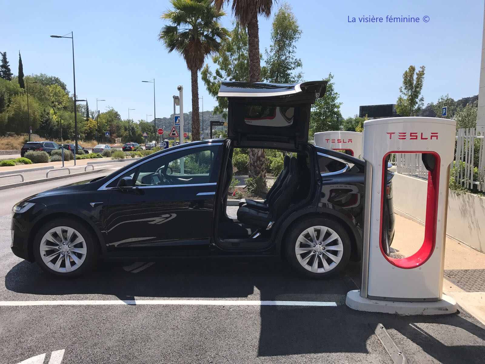 Après quelques échanges avec Tesla France, nous voici centre d’essai permanent basé à Polygone Riviera (Cagnes sur Mer). Notre interlocuteur nous accueille puis nous guide au parking où se trouve la Model X et les fameux « superchargeur ». Nous démarrons avec une présentation du véhicule, ses options, ses rangements, et les fameuses ouvertures et fermetures de portes « Falcon » pour les passagers arrière.