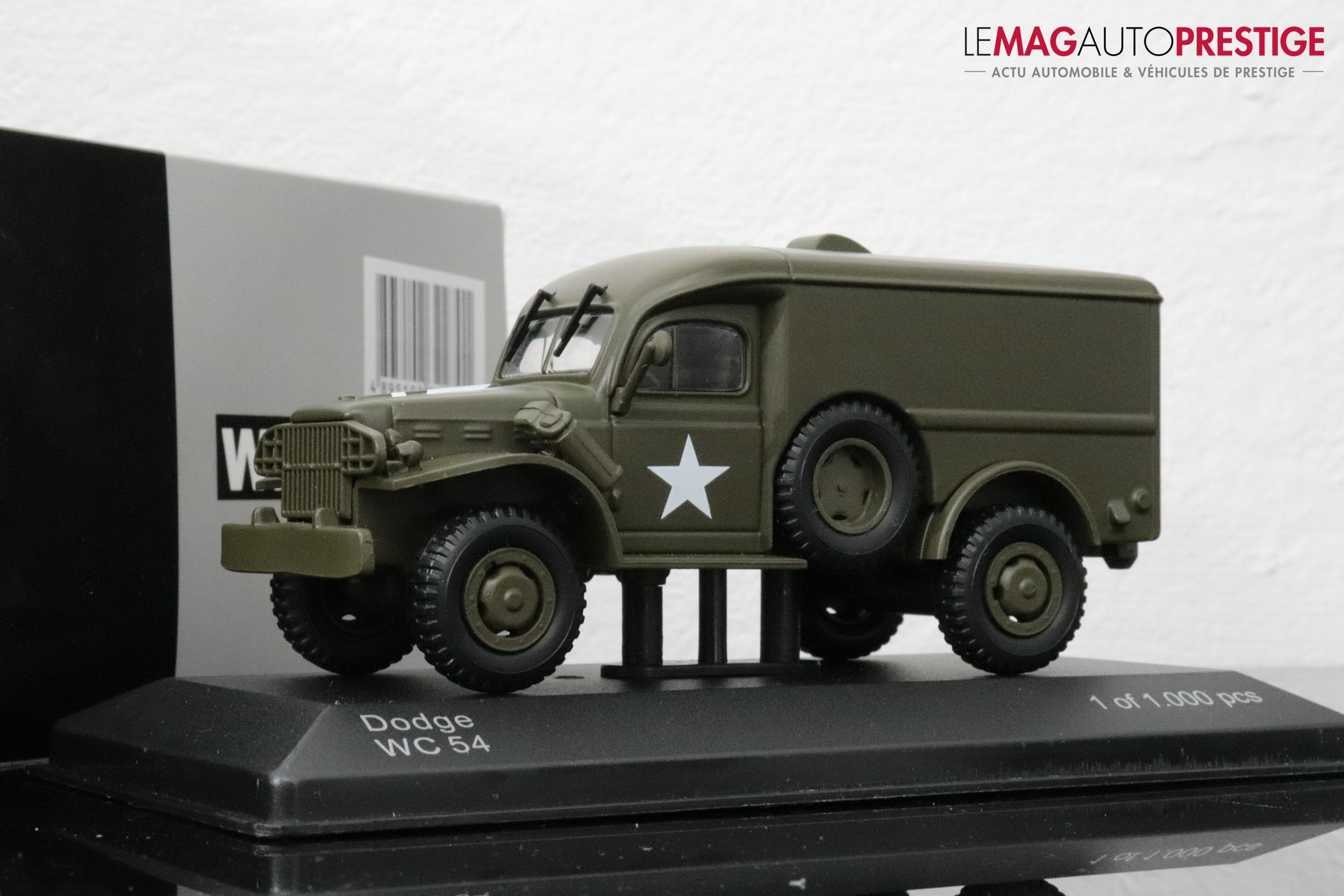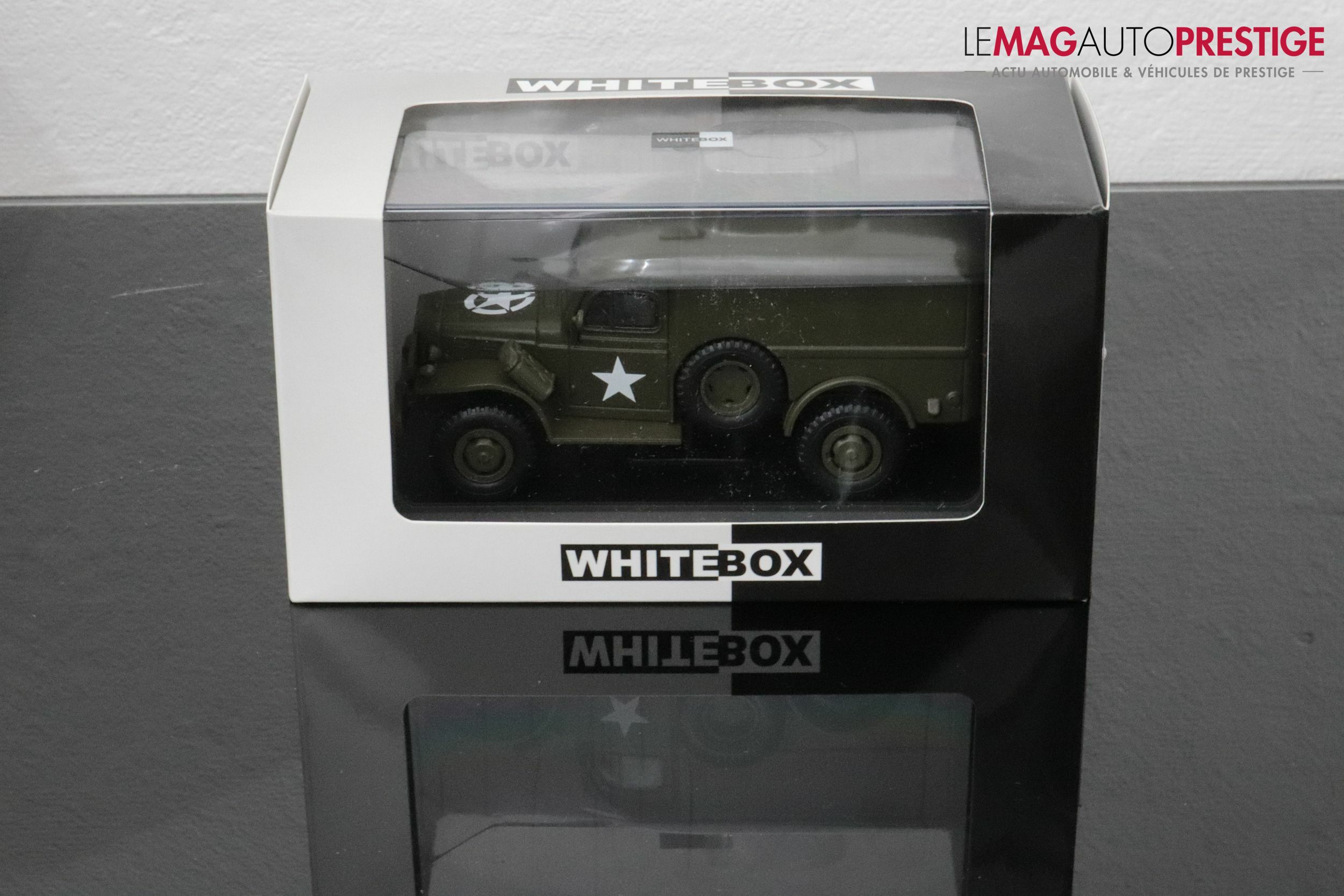 Chez White Box, il y a un peu de tout. Comme le prouve notre Dodge WC 54 au 1/43e. Habitué à ce genre de véhicules militaires chez Solido dans les années 90, il était intéressant de le voir débarquer chez White Box. Cette marque propose un très large choix de véhicules, surtout civils, au 1/43e. La grande majorité de ces miniatures sont simplement de nouvelles variantes de voitures disponibles chez Ixo. La boite et le socle sont beaucoup plus simples et le prix plus attractif. Ici, une 1/43e est vendue, en moyenne, autour de 25€. Un excellent compromis pour ceux qui veulent du Ixo à moindre coût. A noter que les amoureux de vieilles voitures (avant les années 90) trouveront leur bonheur chez White Box !