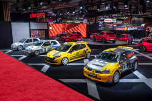 Depuis novembre, l’exposition « cliorama » est le temps fort du « défilé Renault » aux Champs Élysées. Pour Rétromobile, le constructeur français exporte cette exposition Porte de Versailles. C’est l’occasion pour les dizaines de milliers de visiteurs d’admirer l’évolution de la petite citadine, du premier modèle des années 90 à la sixième génération qui arrive très bientôt. En plus des modèles de série, on peut découvrir quelques Clio emblématique comme la monstrueuse V6, la magnifique Williams mais aussi des modèles rallye. Sur un stand de plus de 900 m² on peut donc découvrir les modèles ci-dessous :
