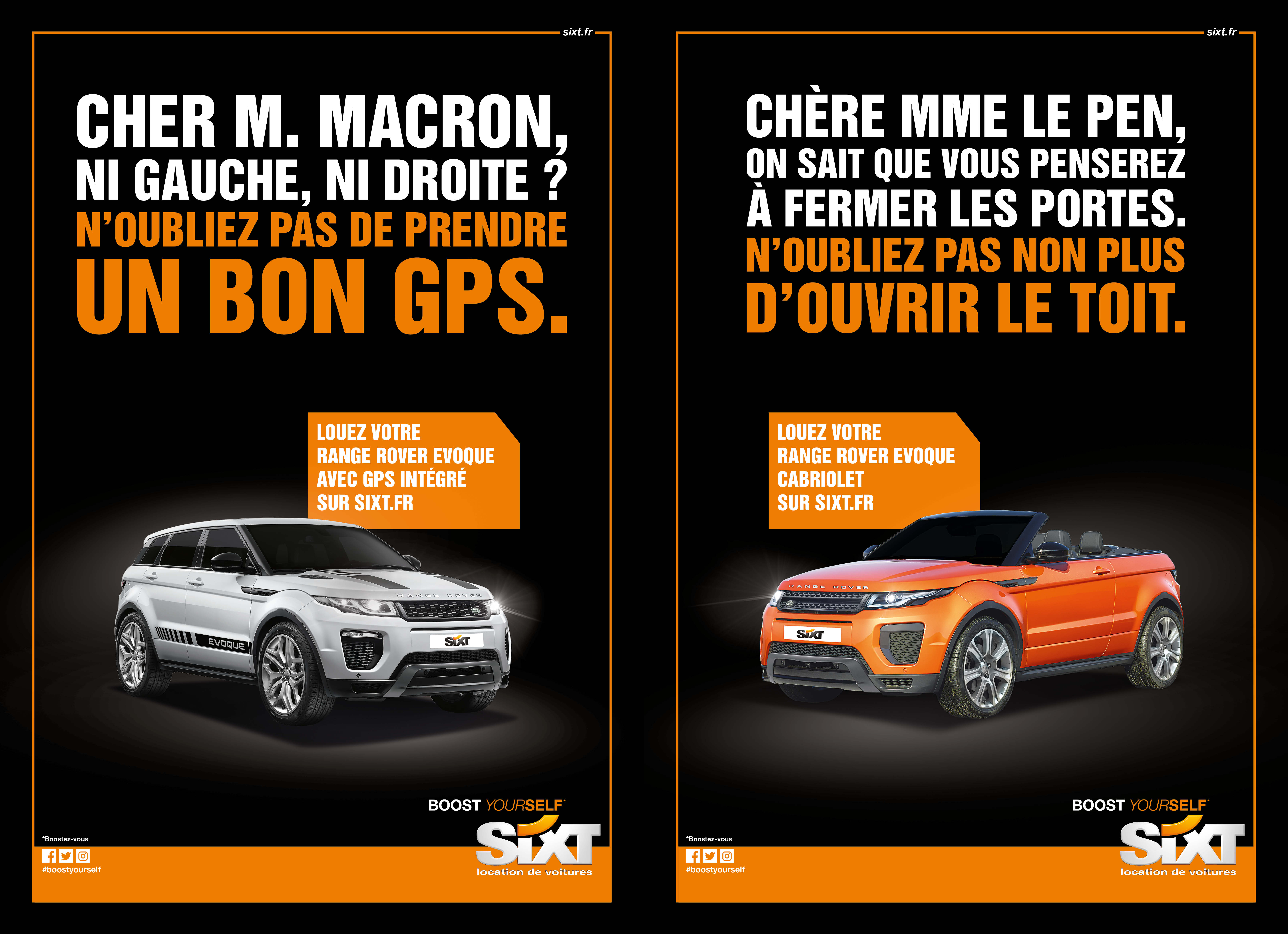 Ainsi, Sixt propose à Emmanuel Macron de louer un Range Rover avec GPS intégré : « Cher Monsieur Macron, ni gauche, ni droite ?