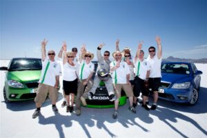 Skoda et le sport auto c’est une longue histoire d’amour. La marque tchèque est surtout connue pour le rallye. Mais de nombreux autres projets sont développés à droite et à gauche. Comme en 2011 où une équipe anglaise d’ingénieurs et de mécaniciens est allé sur le lac américain de Bonneville pour y décrocher un record de vitesse. Ce Grand Lac Salé est bien connu des amateurs de vitesse et d’automobile. Il est parfait pour, justement, y atteindre des vitesses folles. Là-bas, les « fusées à 4 roues » peuvent dépasser les 700 km/h.